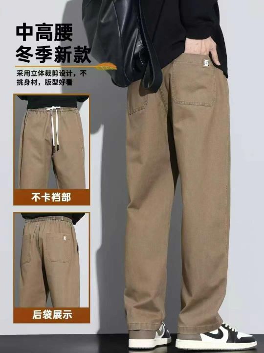 秋冬新款加绒加厚男士网红松紧腰休闲长裤,独立包装带...