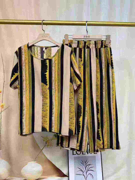 全清7.5分货+12025夏季薄款女装凉爽透气圆领九分裤睡衣套装可外穿家居服,...