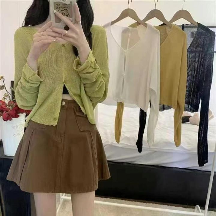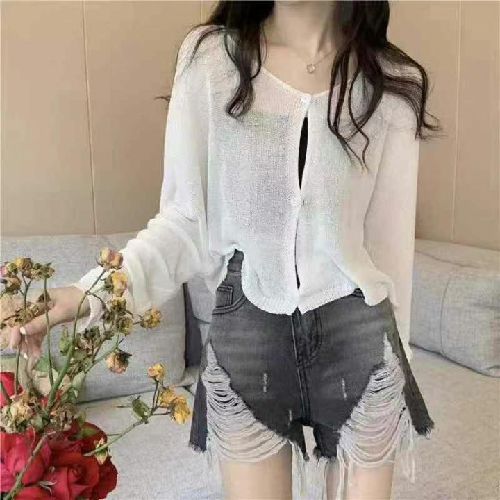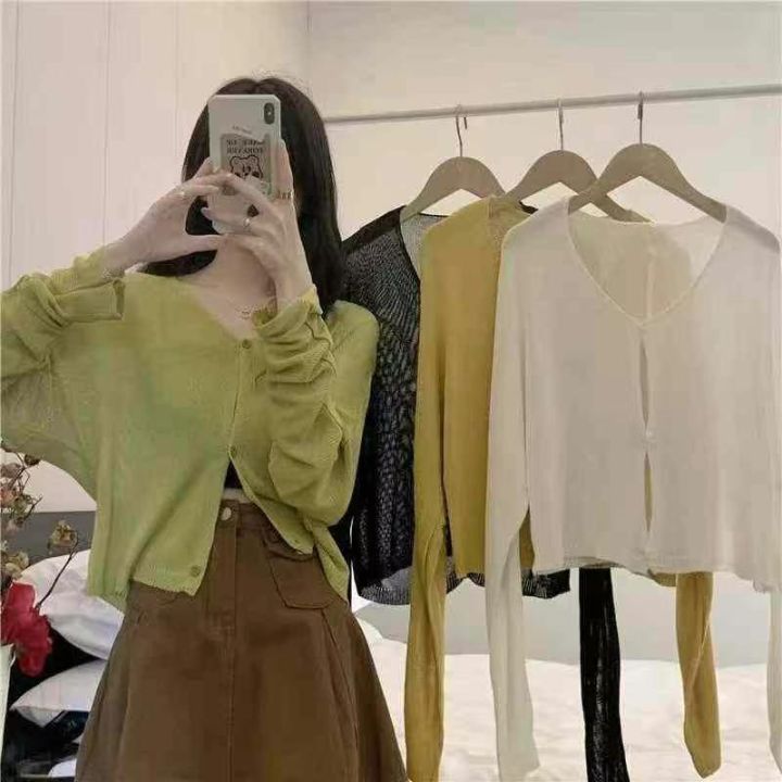 夏季新款冰丝韩系穿搭净版简约宽松纯色针织长袖开衫,...