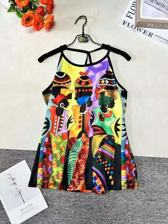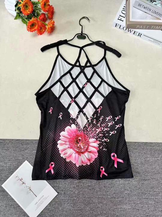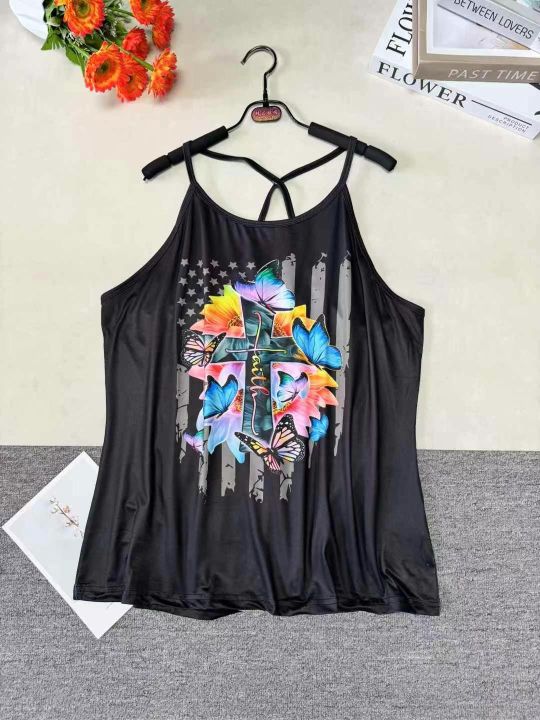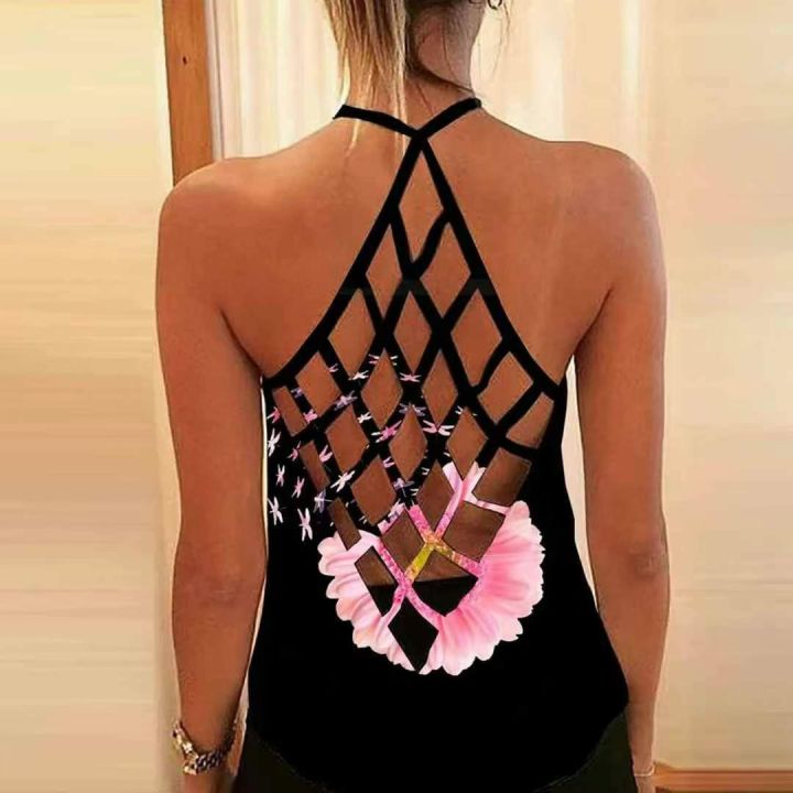 外贸性感露背挂脖镂空 3D 印花背心,数量:182件,码...