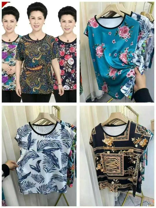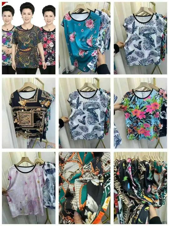 4.2全清7000件,夏季中老年女装T恤,妈妈装大码宽松女士短袖t,均码90-150斤可穿,500件打包4.9元,100件5.5元