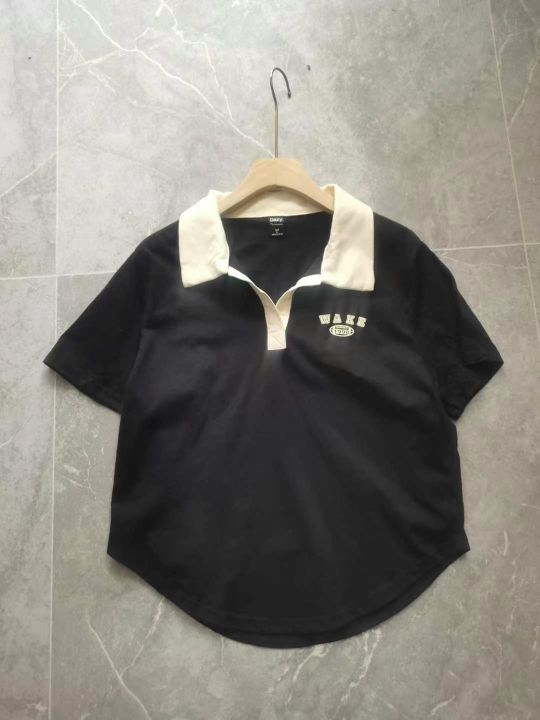 美式polo领短袖T恤女夏季新款设计复古辣妹修身显瘦短款上衣ins潮,s一3XL码,主要是黑色多,纯棉质量好,防水袋装,1580件。全清4.8块,分货加一