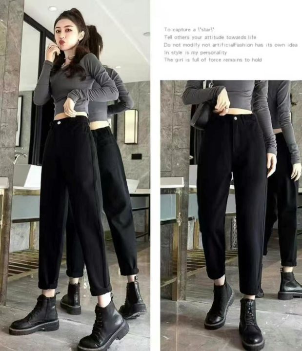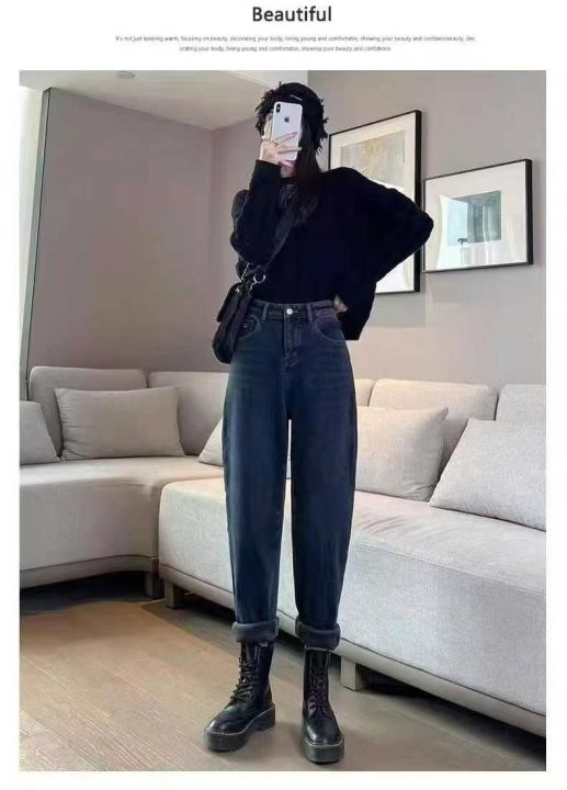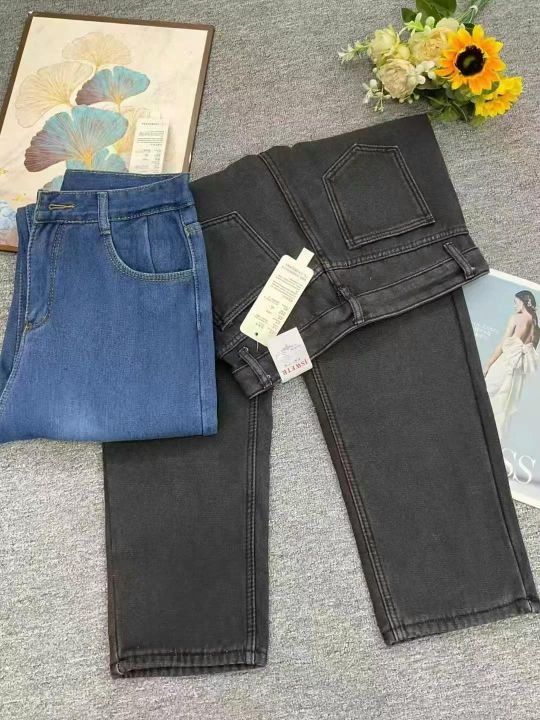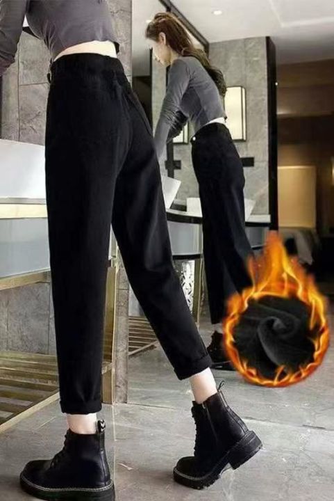 冬季女装净版简约加绒加厚洗水棉牛仔裤,独立包装带吊...
