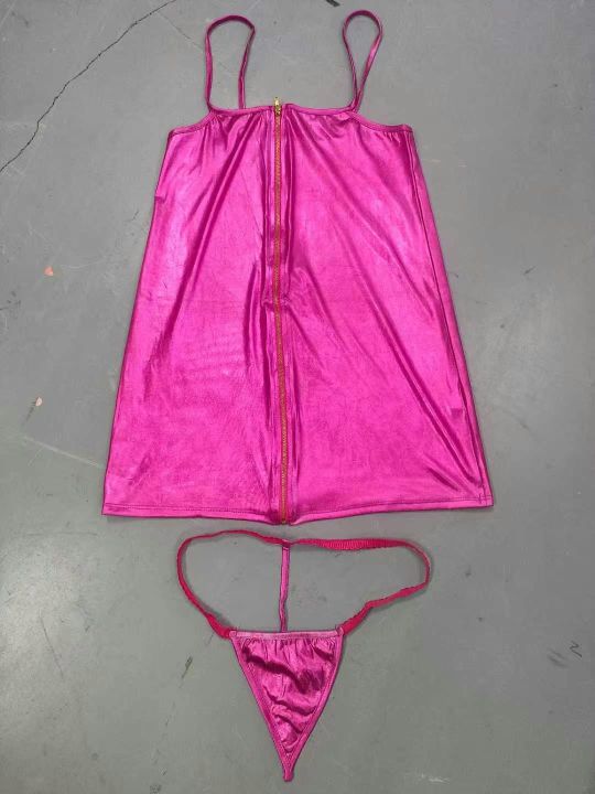 1.8秒杀[庆祝][庆祝] 两件套性感辣妹漆皮吊带弹力包臀连衣裙,独立包装,瑕疵串色(如图8)均码:穿到80-100斤左右,数量230套左右