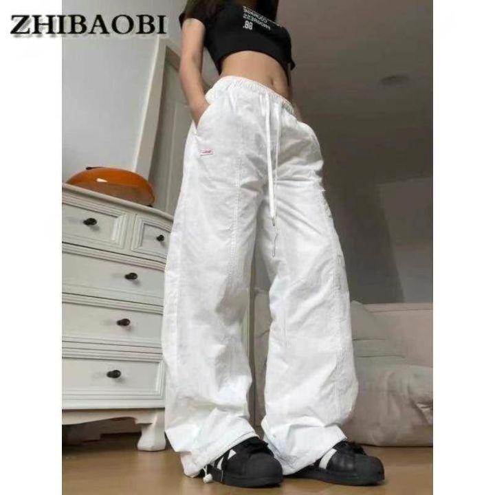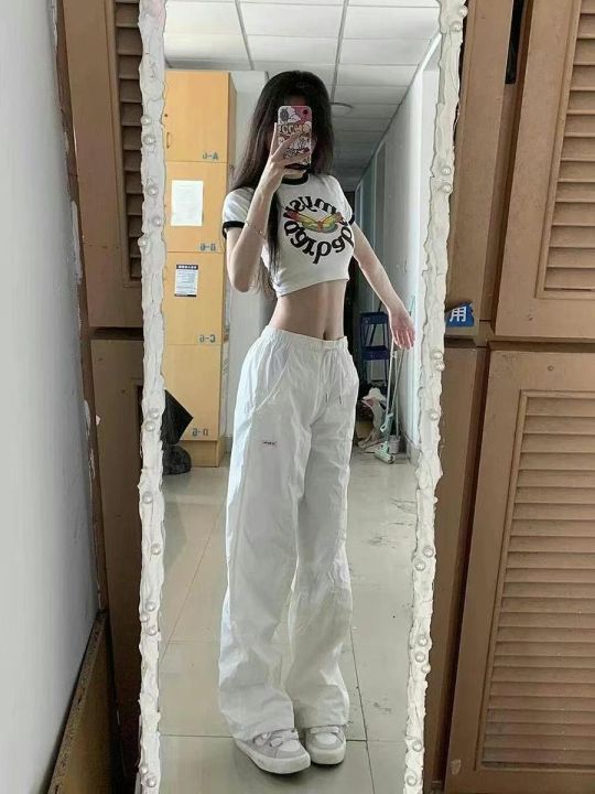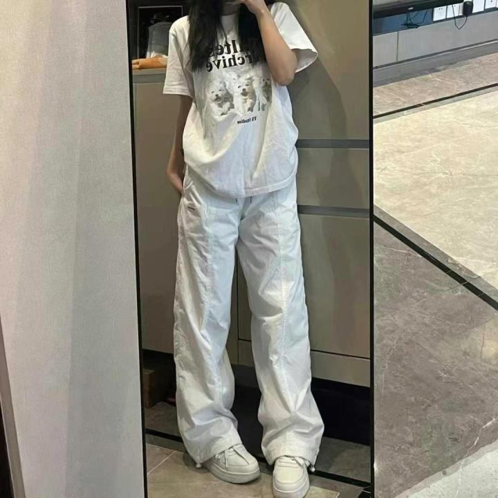 天猫在售160件左右美式白色速干工装裤女秋季薄款束脚宽松直筒抽绳百搭阔腿伞兵裤子,码数S-XL,独立包装