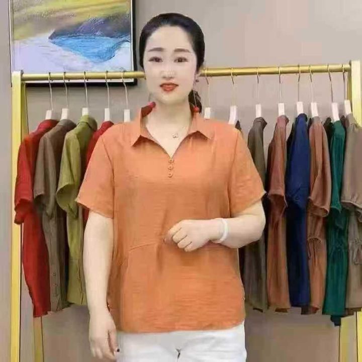 ☕️800件全清15.8 分货16.8元妈妈款纯色抗皱麻棉翻领中老年款上衣妈妈装新款爆款3个尺码3XL4XL5XL棉麻面料冰凉手感,新款夏季短袖翻领款