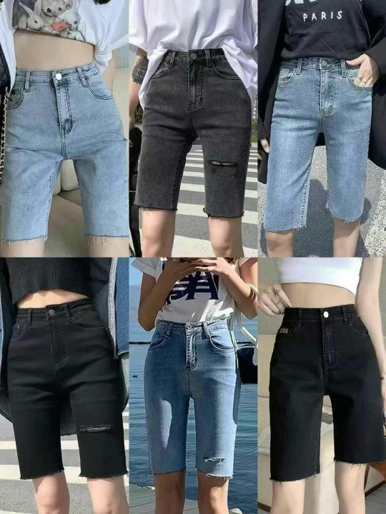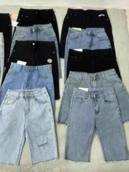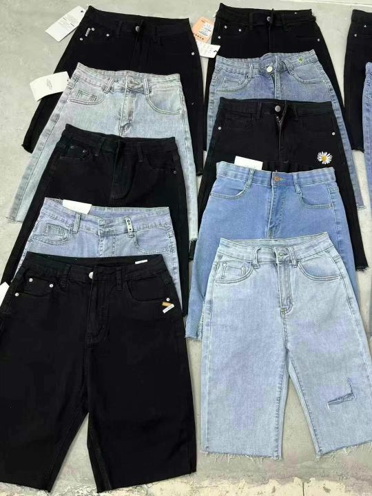 中山高品质棉弹女装牛仔中裤☕️2800条全清7.8元 分货+1 码数s到xxl(25-30)小整图片视频款,全部都有弹力,正品独立包装。系列款蓝色黑色货品很新,修身弹力五分牛仔短裤女夏季新款高腰显瘦毛边五分骑行中裤