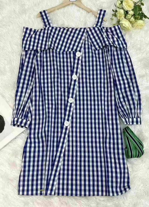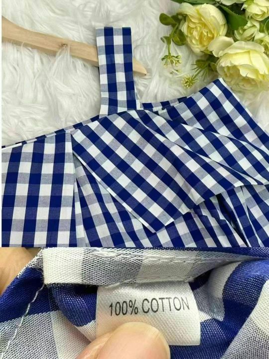 设计感格纹吊带裙时尚减龄一字肩露肩潮流感连衣裙,蓝白格纹非常清爽[色],上身特别显白[强],简单精致的裁剪,在衬托纤细的锁骨和肩膀的同时遮挡了手臂“拜拜肉的赘肉[666],凸显了性感元素,纯棉质地,亲肤透气,今夏必入!100件起,分货13.8