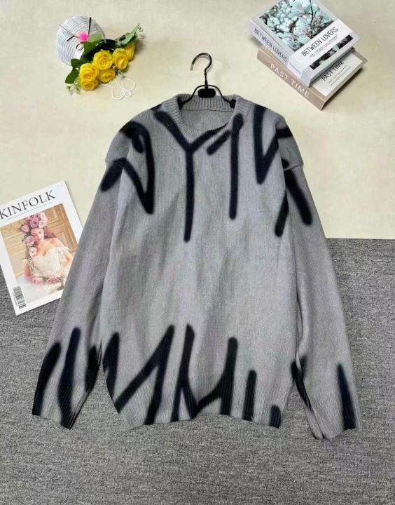 秋季新品纯欲甜辣短款字母刺绣针织长袖圆领套头毛衣,独立包装,均码面料柔...