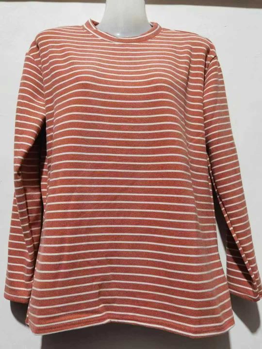 妈妈装长袖德绒亲肤绒条纹打底长袖[玫瑰][玫瑰][玫瑰]...