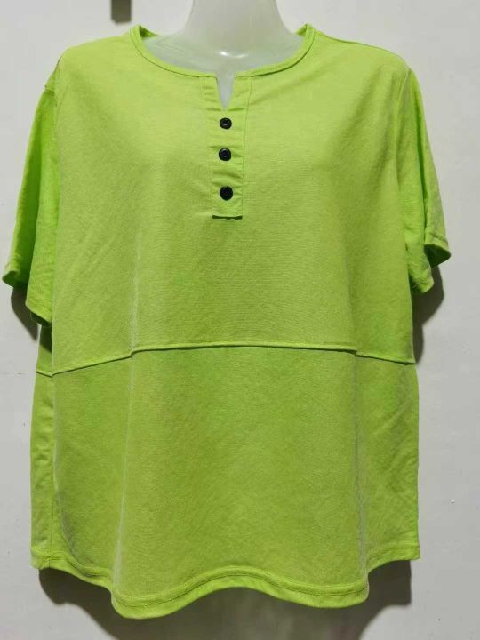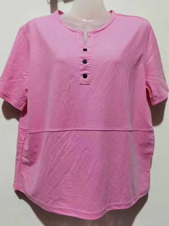 泡泡棉V领纽扣短袖[玫瑰][玫瑰][玫瑰]3XL-4XL多个色...