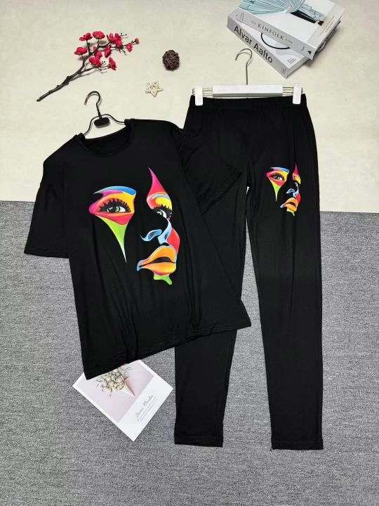 8.5清春秋休闲圆领短袖/长裤印花套装,数量350套左右...
