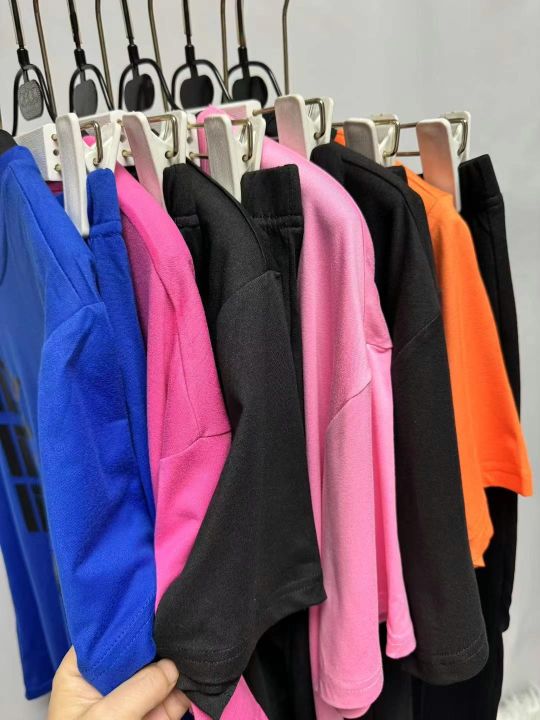 春秋休闲圆领短袖/长裤印花套装,数量350套左右,码数S-2XL,高弹力品质好,拉链式独立包装。