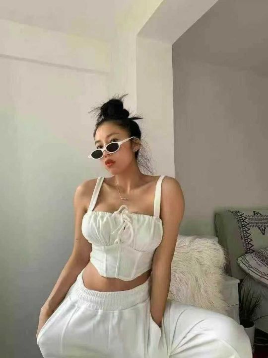 清1300,性感紧身吊带胸衣女新款夏季辣妹纯欲别致系带背心上衣,欧美甜辣风鱼骨吊带短款不规则露脐辣妹上衣,码数s-xl,可清可分。
