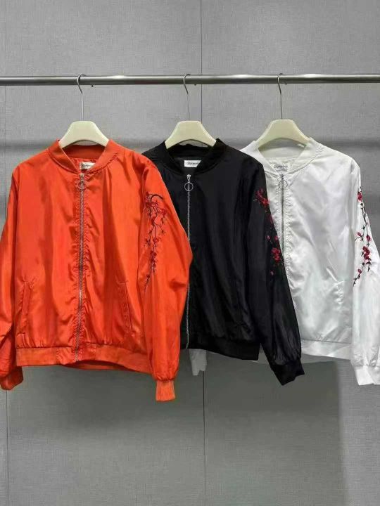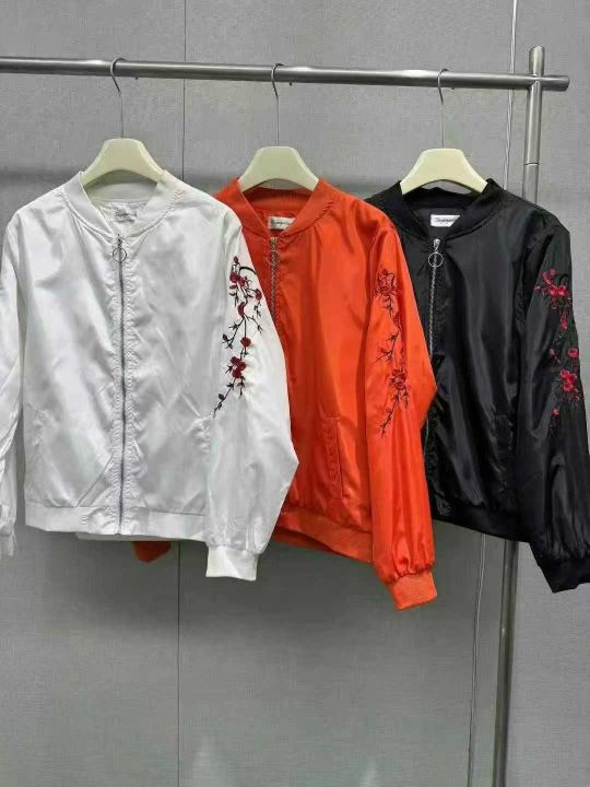 清1500件,国风潮重工刺绣显瘦港风百搭拉链开衫,2025年春秋季新款休闲短款外套女韩版宽松夹克ins百搭棒球服,双边带口袋,码数m-4xl。
