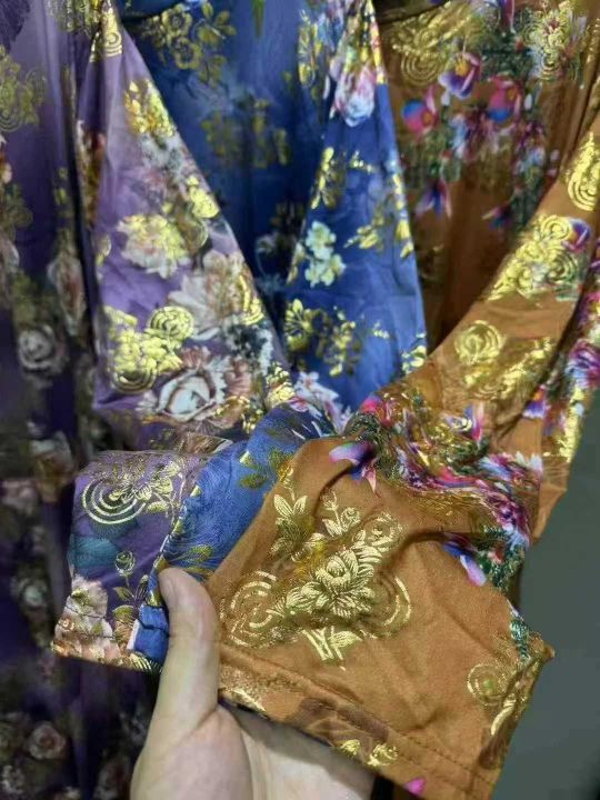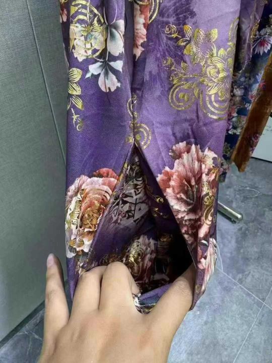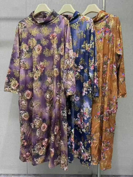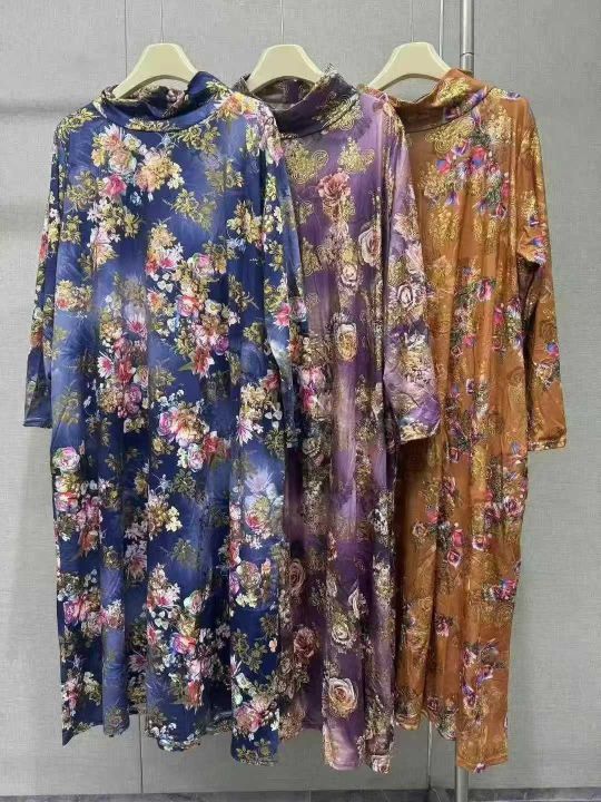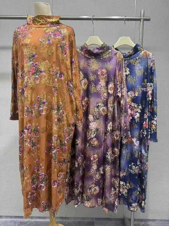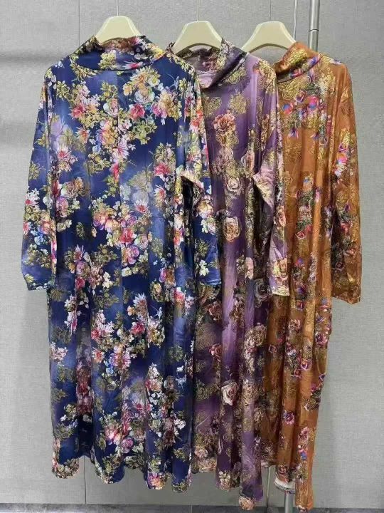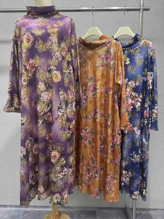 清10000条,新款复古印花烫金显瘦连衣裙舒适立圆领中长裙,双边带口袋,裙长120厘米,,均码,可清可分。