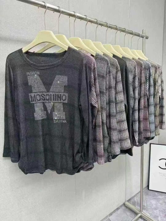 11清2000件,圆领烫钻弹力大码长袖T恤女春季2025新款...