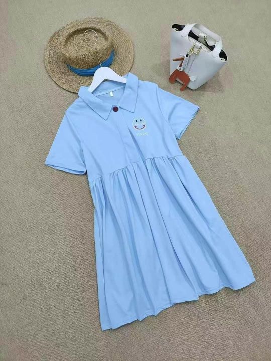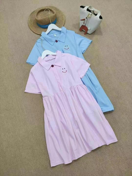 [月亮]:孕妈胖妹宽松遮肚Polo棉质连衣裙