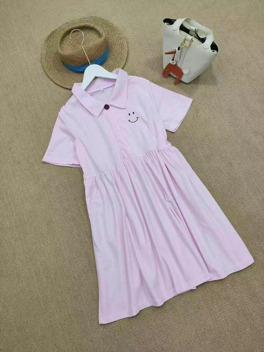 [月亮]:孕妈胖妹宽松遮肚Polo棉质连衣裙