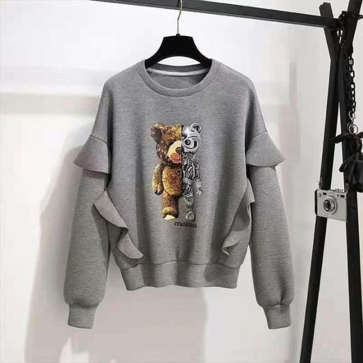 44件小众设计感荷叶边印花加绒卫衣,面料柔软,款式时...