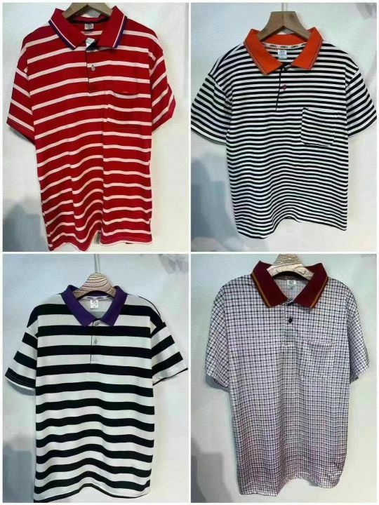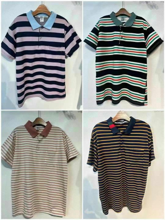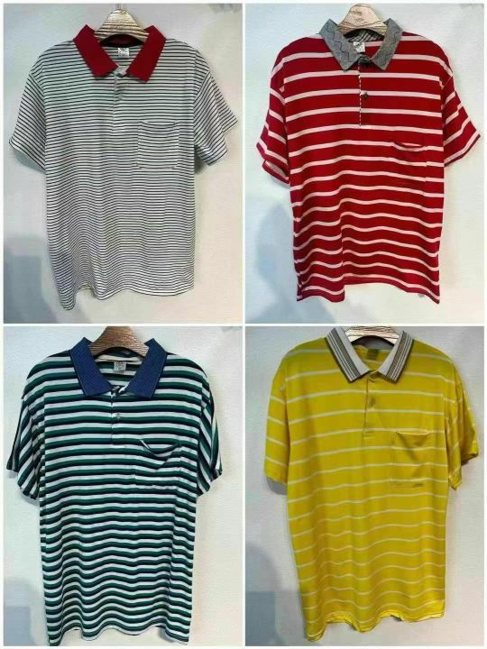 上身polo衫短袖[太阳]全清7.6,清690件,中老年爸爸精品时尚男装polo领短袖,主要以条纹为主,领口全包边处理,面料不统一,柔软舒适透气,品质细节非常到位[得意]不局限图片款、无美颜无滤镜原相机还原质感很好全部全新独立包装,这个性价比太值了[666]防水袋发货配小份100/200件起多色多款混批7.8码数:50-56码