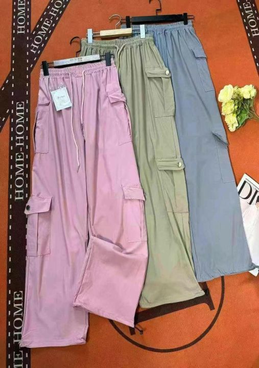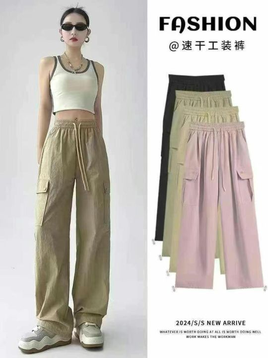 下身工装长裤[太阳]全清22.1,800件、均码春夏季抽绳松紧腰工装装高腰直筒多口袋宽松运动速干休闲工装裤,糖果色[哇],裤脚抽绳束口设计,一裤多穿️阔腿️束脚[色],品质,独立包装,带吊牌,100件起多色混配23.1