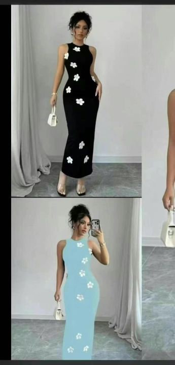 ☕️高弹力外贸小众优雅连衣裙女修身气质花朵收腰显瘦小高领包臀长裙280条全清22元,不分货,M到XL码数,独立包装,图4有5个色。