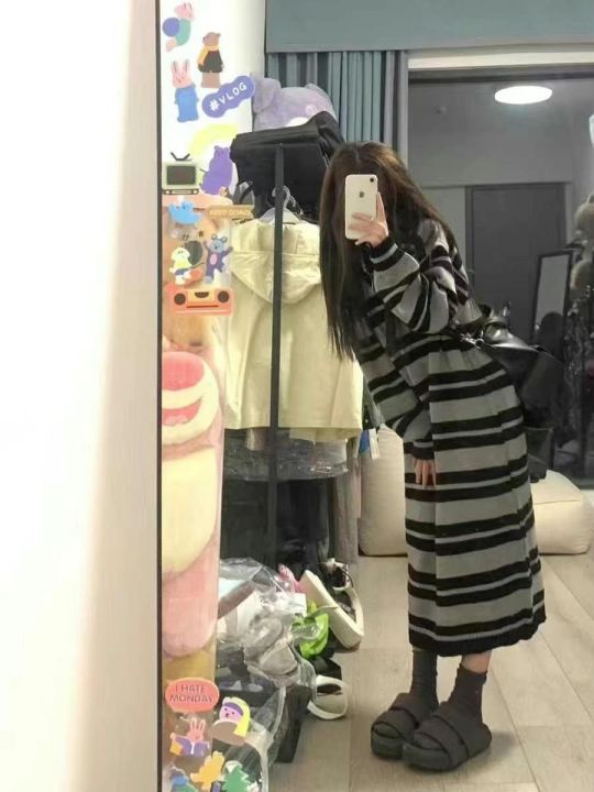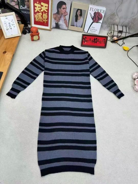 电商在售春季新款学院风条纹针织连衣裙小个子慵懒风打底内搭过膝毛衣裙,独立包装,面料柔软,均码80-130斤,650件左右,全清13.8分货➕1