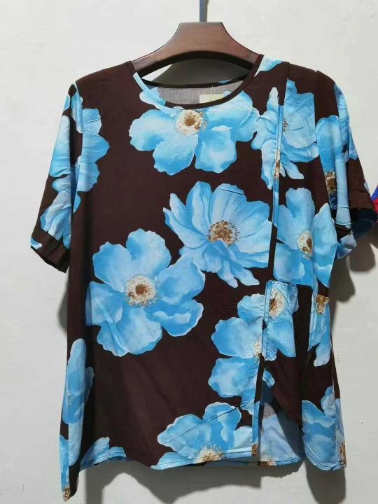 洗水棉拼接短袖[玫瑰][玫瑰][玫瑰]加大加肥版均码