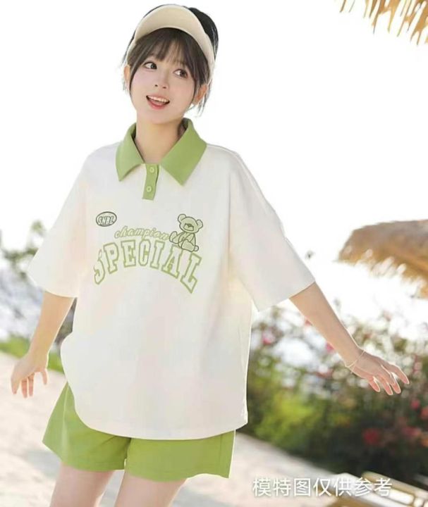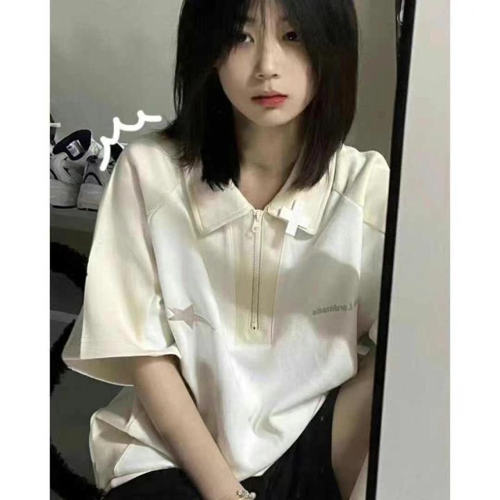 6.8清电商仓回收77件学院风宽松棉质短袖polo衫上衣女...