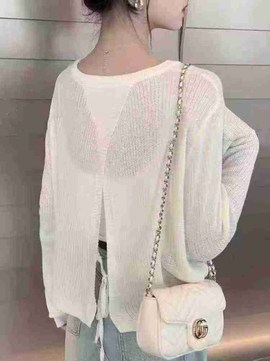 早秋季新品设计款后背开叉绑带镂空时尚长袖针织衫,独立包装,均码面料柔软...