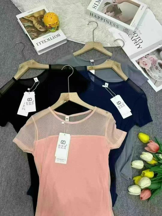 工厂回收3520件靓妹夏季圆领网纱冰丝t恤衫,码数m-3xl,面料柔软舒适有弹力,锦纶面料亲肤手感超级好,带纸板独立包装带吊牌。分货加0.5