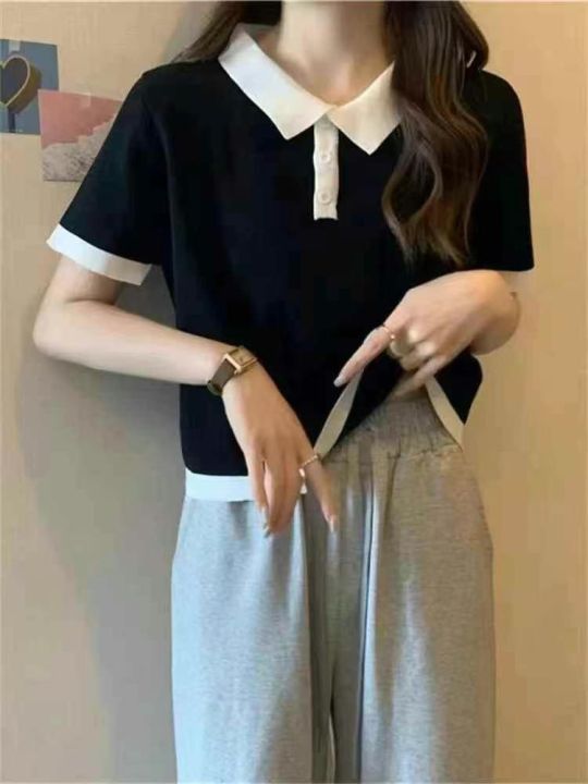 正肩冰丝短袖女T恤女polo上衣,黑白两色,码数s码到L码123码,面料柔软舒服,,基本独立包装少部分没有包装,货品干净260件,全清4.8