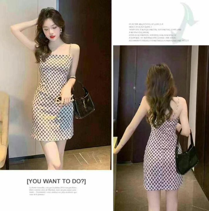 设计感链条吊带连衣裙女2025夏季新款性感气质修身显瘦格子包臀裙,271条,S-XL(1-4码,)独立包装,分货➕1(款号:0609#16)