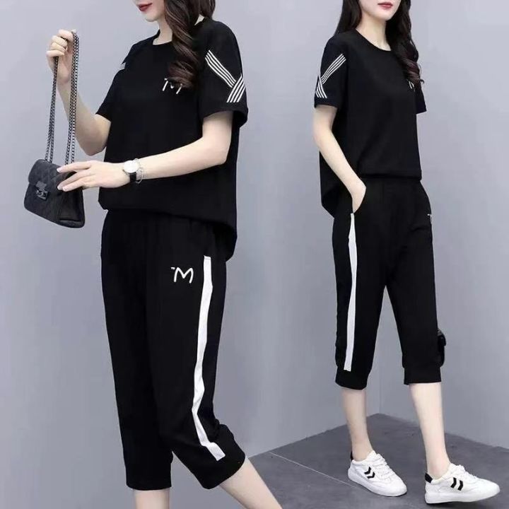 运动套装女夏季2025年新款宽松韩版短袖休闲大码时尚两...
