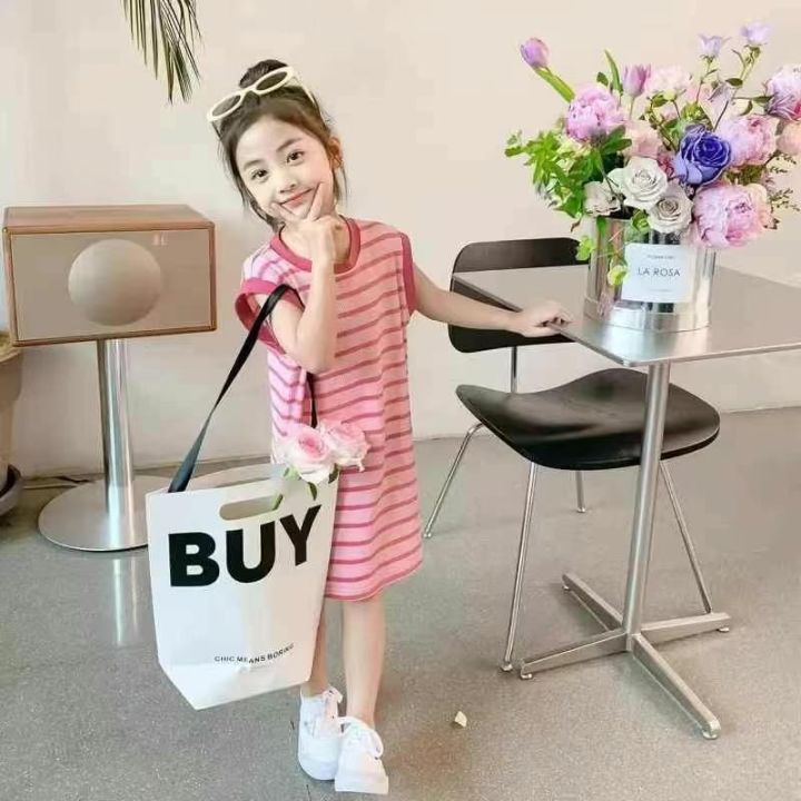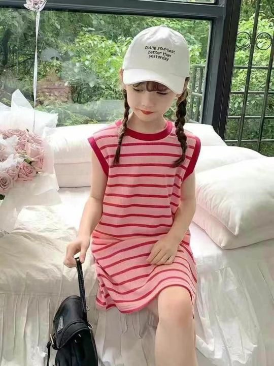 200件左右女童夏装连衣裙2025新款儿童网红条纹韩版背...