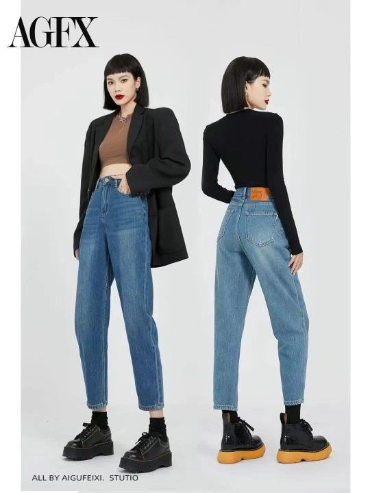 ☕️哈伦牛仔裤女春秋新款宽松显瘦萝卜裤高腰老爹裤86...