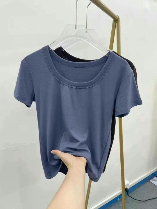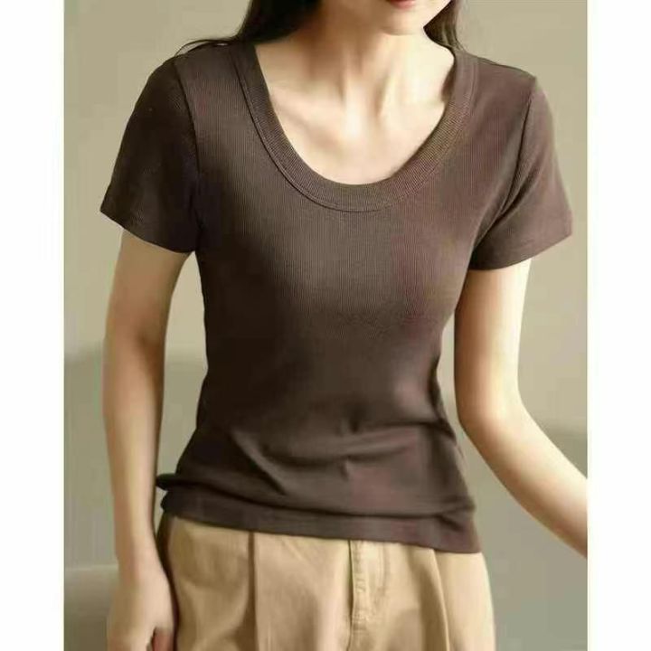 亏本清仓685件高品质U领正肩修身女装短袖T恤。95棉,...