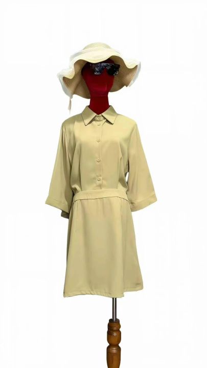 法式大码连衣裙,高级感假两件连衣裙,女2025年夏季新款时尚气质收腰中袖衬衫裙