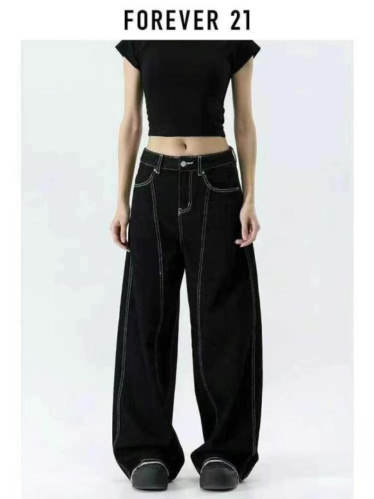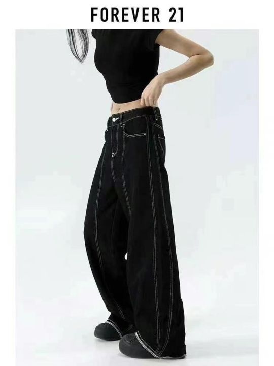 9.9清天猫仓回收146件美式明线宽松黑色牛仔裤女,码数...