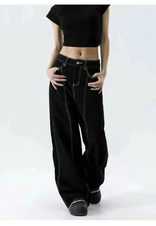 天猫仓回收146件美式明线宽松黑色牛仔裤女,码数M-XL,L码多。面料柔软舒适质量好,高品质牛仔,带吊牌防伪扣独立包装。