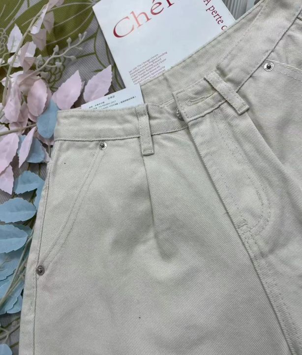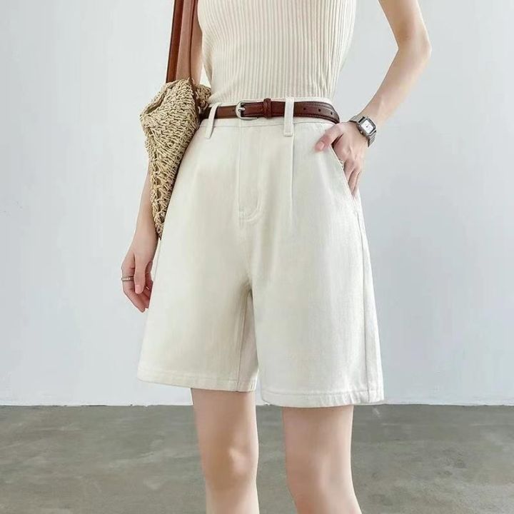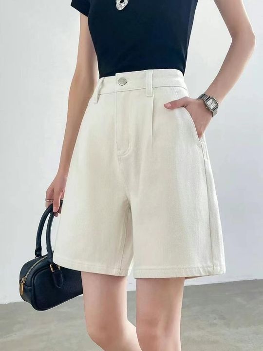 ☕️杏色牛仔短裤女夏季薄款高腰a字宽松显瘦阔腿宽松...