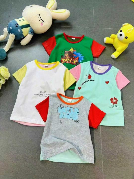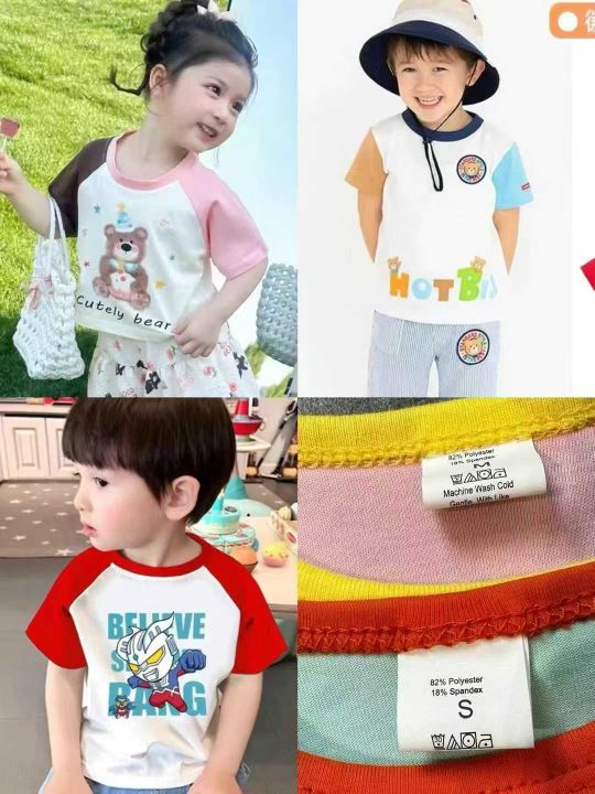上身儿童短袖全清3.98,6800件,码数S-XL,适合1-6岁。 男女童纯棉短袖t恤夏装新款儿童拼接插肩袖休闲宽松宝宝短袖T恤,糖果色色,颜色多,图案漂亮,不仅限图片款,上身效果巨巨好看,无美颜,无滤镜原相机还原质感很好,面料100%纯棉,超低价[哇]太划算了[强]独立包装,配小份100/200件起4.5