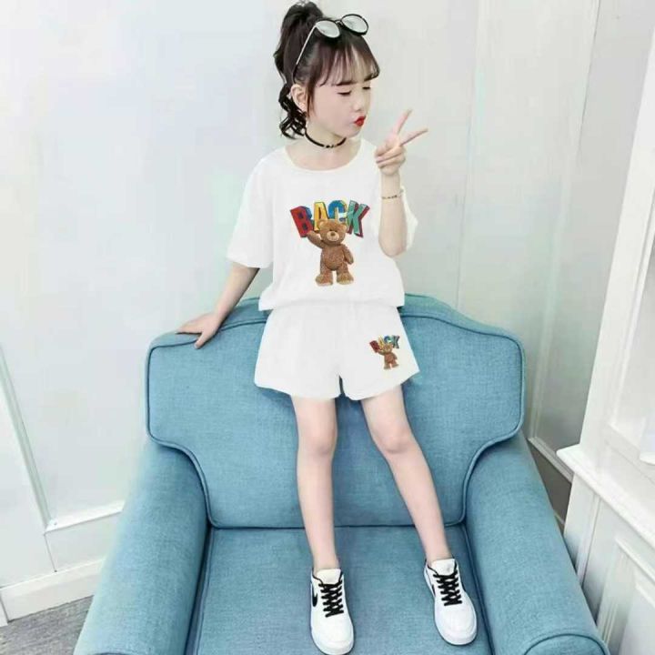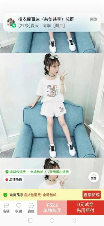 男女童夏装纯棉新款儿童装韩版网红短袖短裤两件套,独...