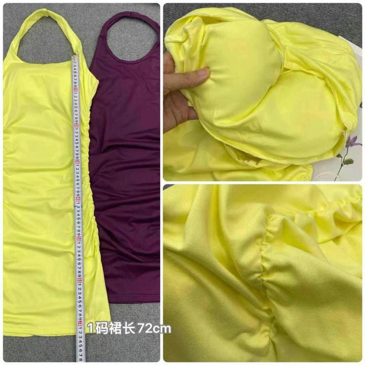 面料柔软有弹力,褶皱设计,基本黄色,20多件没胸垫,