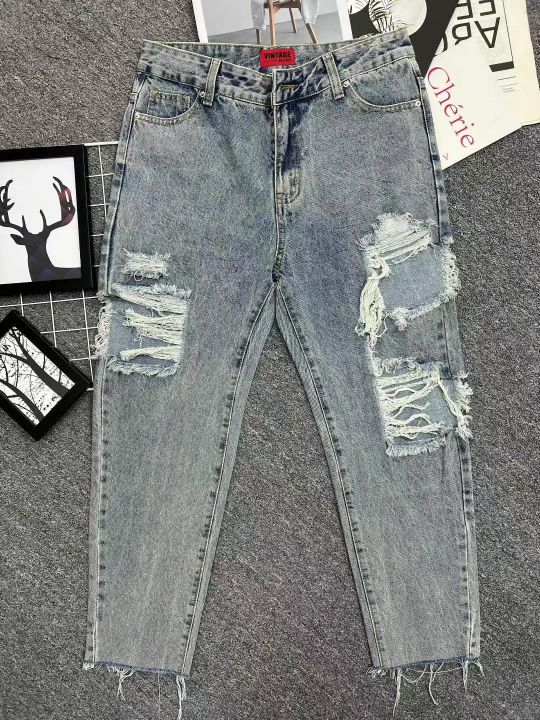 ☕️破洞牛仔九分裤女宽松春夏季韩版高腰显瘦哈伦乞丐裤260条全清8.8 分货+1 码数S到XL,精品独立包装。公司单质量很好[庆祝][庆祝]