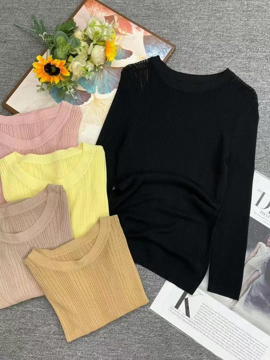 春夏新款韩版五分袖冰丝高弹力修身显瘦薄款针织小衫,...