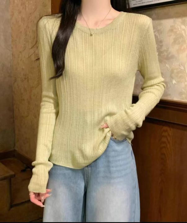 秋季新品法式小众复古设计感V领单排扣针织长袖T恤,独立包装,面料柔软舒适...