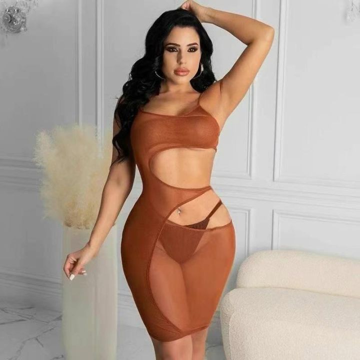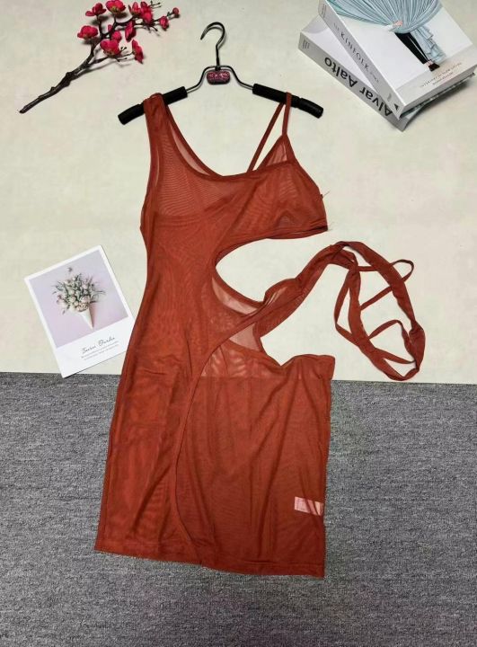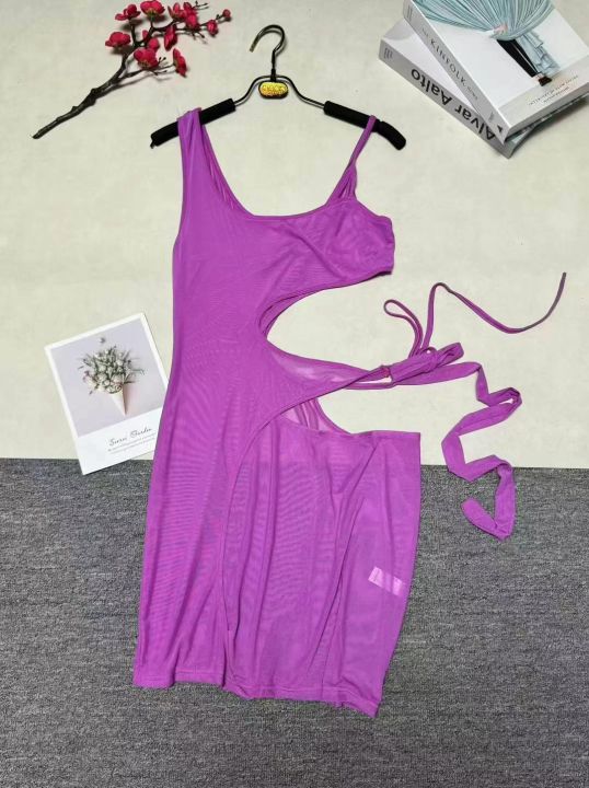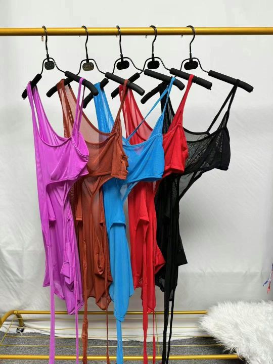 欧美外贸春夏新款纯色无袖镂空不规则性感网纱连衣裙,整款五色,845条,码数S-2XL,品质好,拉链式独立包装。