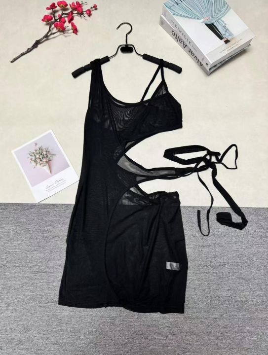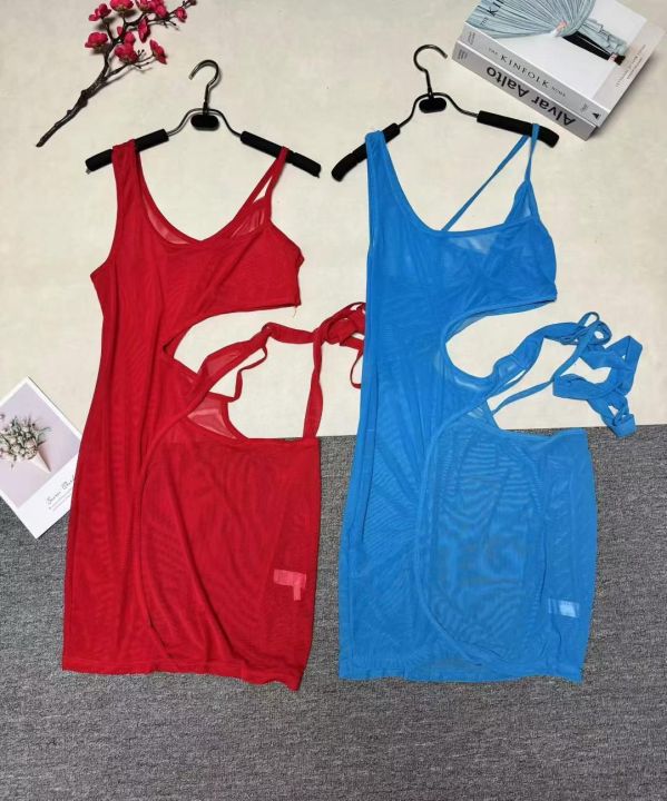 欧美外贸春夏新款纯色无袖镂空不规则性感网纱连衣裙,整款五色,845条,码数S-2XL,品质好,拉链式独立包装。